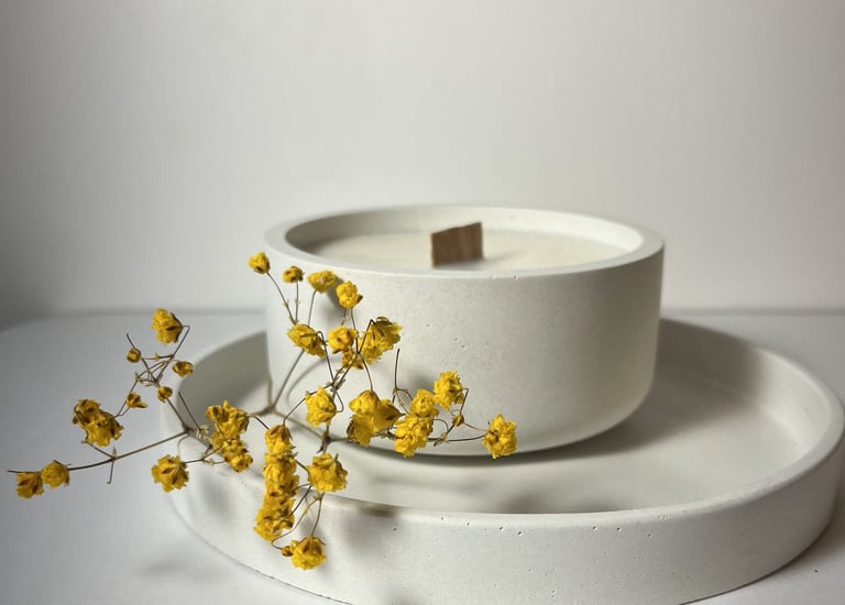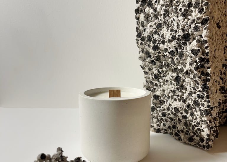 Kiekvienas mūsų sukurtas gaminys, pagamintas iš betono, yra unikalus, o sojų vaškas užtikrina švarų ir ekologišką degimą.